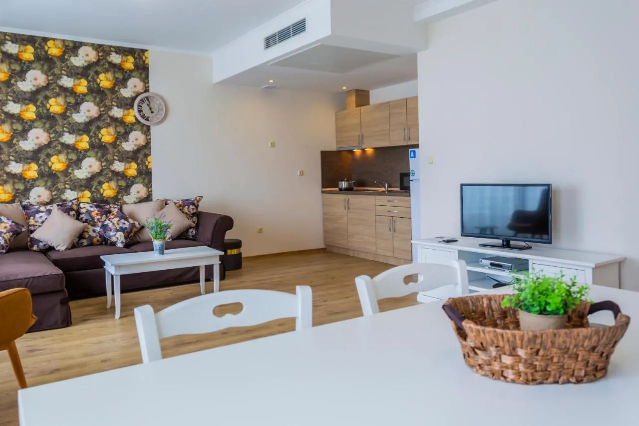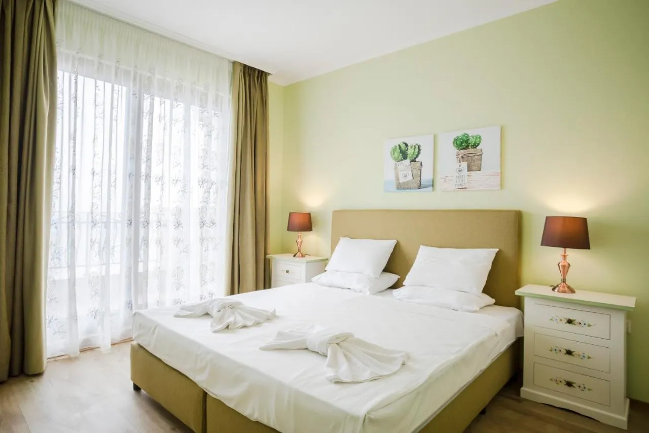 Oaspeții Aparthotelului Gardenia Beach Palace beneficiază de o grădină, o piscină interioară cu utilizare gratuită a șezlongurilor și umbrelutelor de plajă.