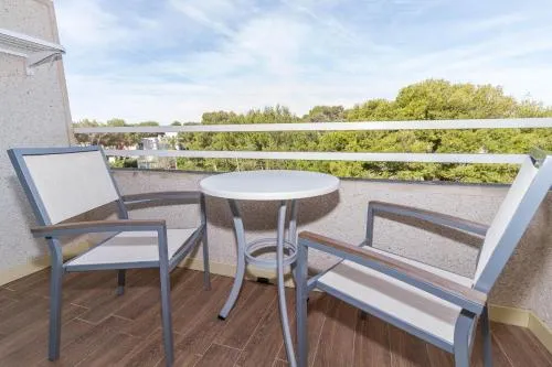 Camerele de la Hotelul și SPA Eix Platja Daurada oferă vederi frumoase. Acestea includ de asemenea aer condiționat, televizor cu satelit și baie privată, precum și Wi-Fi gratuit.