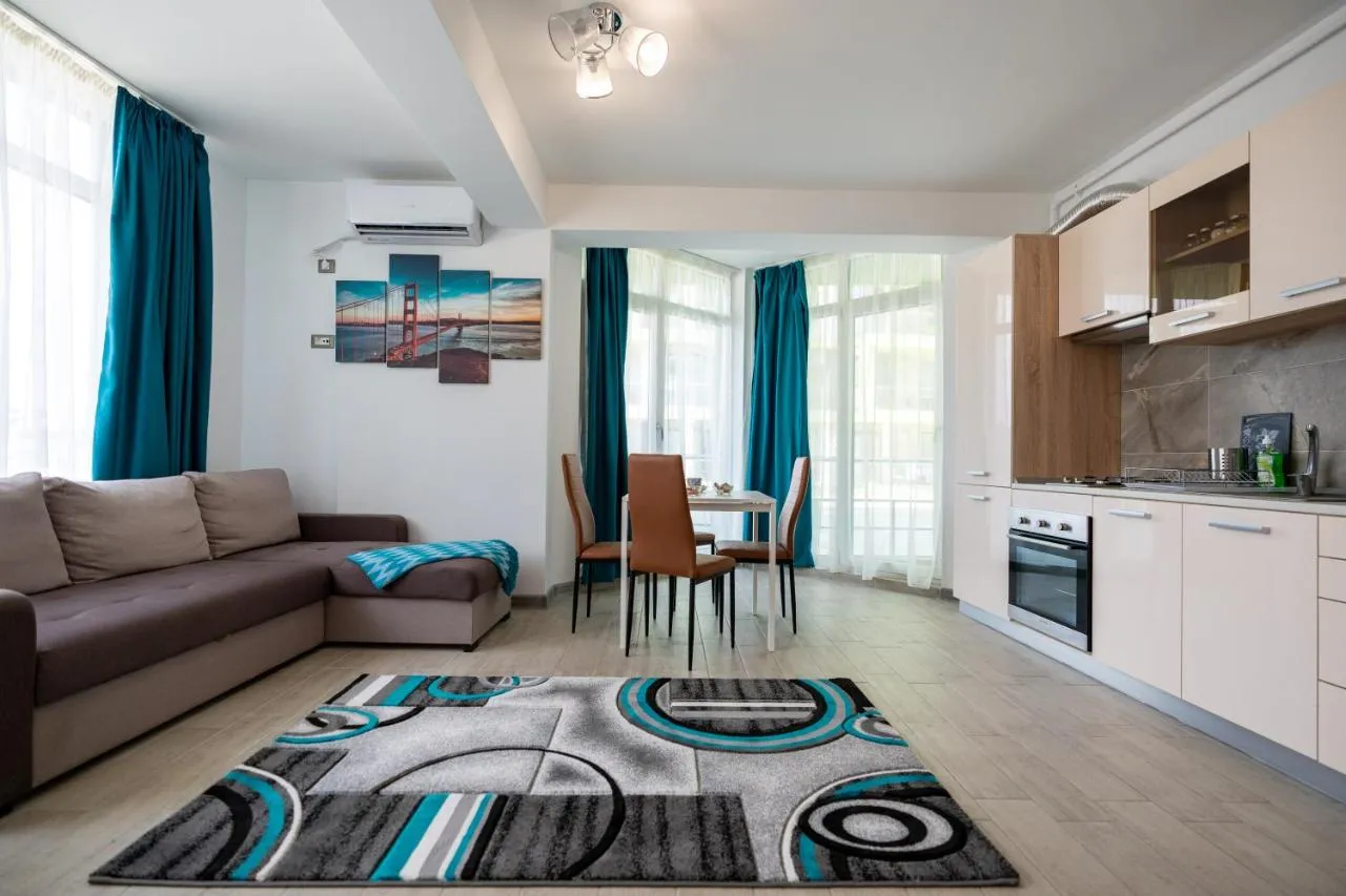 Situat la doar 200 de metri de Plaja Mamaia, SAN FRANCISCO ApartHotel Pool & SPA Mamaia Nord oferă cazare în Mamaia Nord cu acces la o piscină interioară, un bar, precum și un lift. Amplasată chiar pe plajă, această proprietate dispune de o piscină cu vedere, un centru de spa și wellness și un centru de fitness. Întregul apartament, care este liber de alergeni, oferă Wi-Fi gratuit și dispune de o saună.
