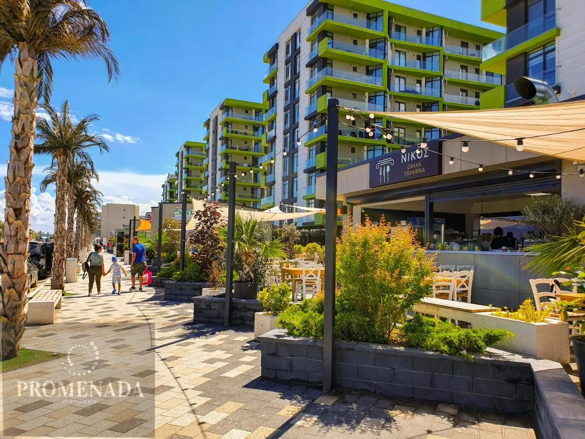 La apartament, restaurantul este deschis pentru cină și prânz și este specializat în bucătăria grecească.