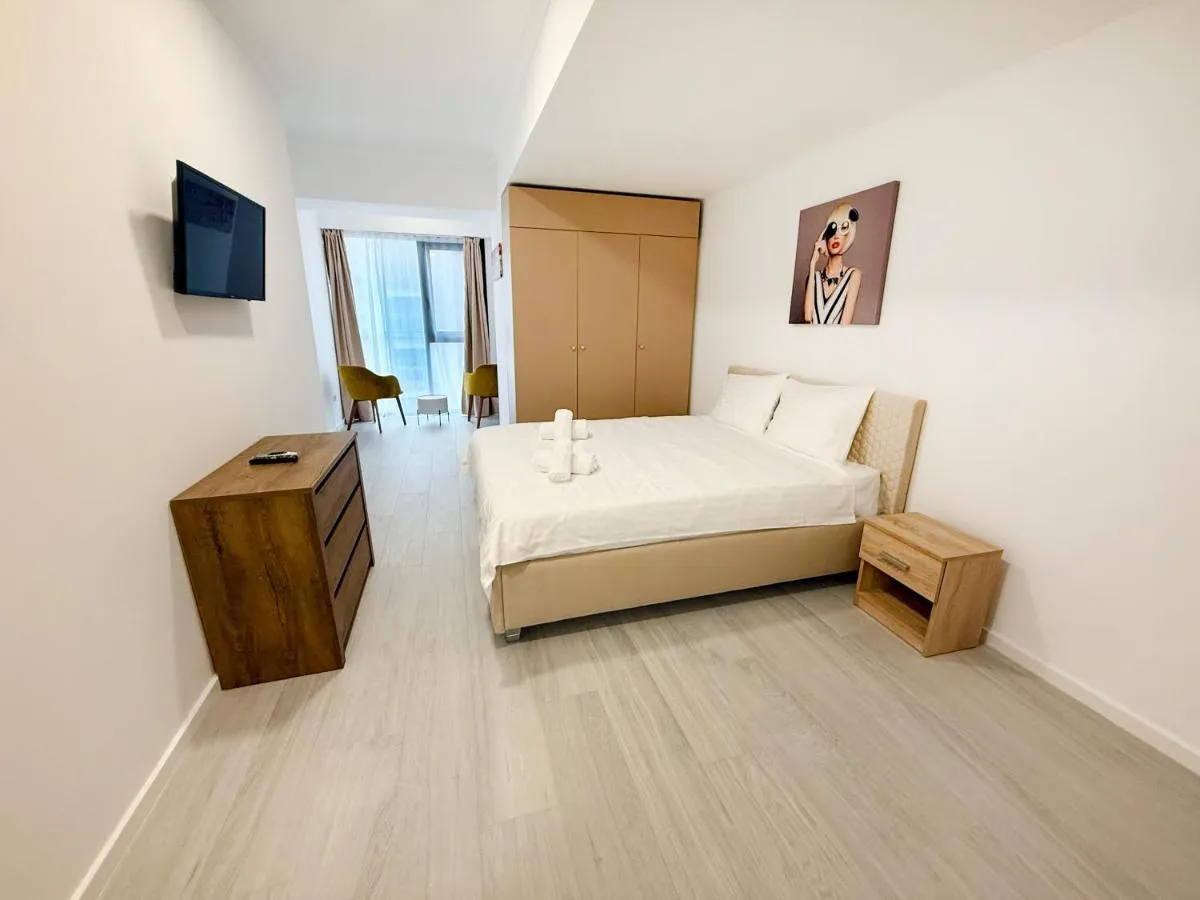 Dimensiuni: 90 mp Numar de camere: 1 camera This spacious apartment comprises 1 living room, 2 separate bedrooms and 1 bathroom with a shower and free toiletries. The apartment's kitchen, which features a refrigerator and kitchenware, is available for cooking and storing food. The air-conditioned apartment provides a flat-screen TV with streaming services, a private entrance, soundproof walls, a tea and coffee maker as well as sea views. The unit offers 3 beds.