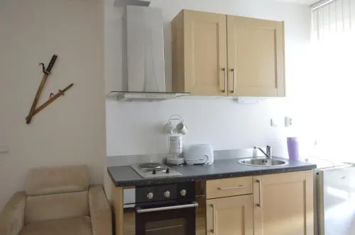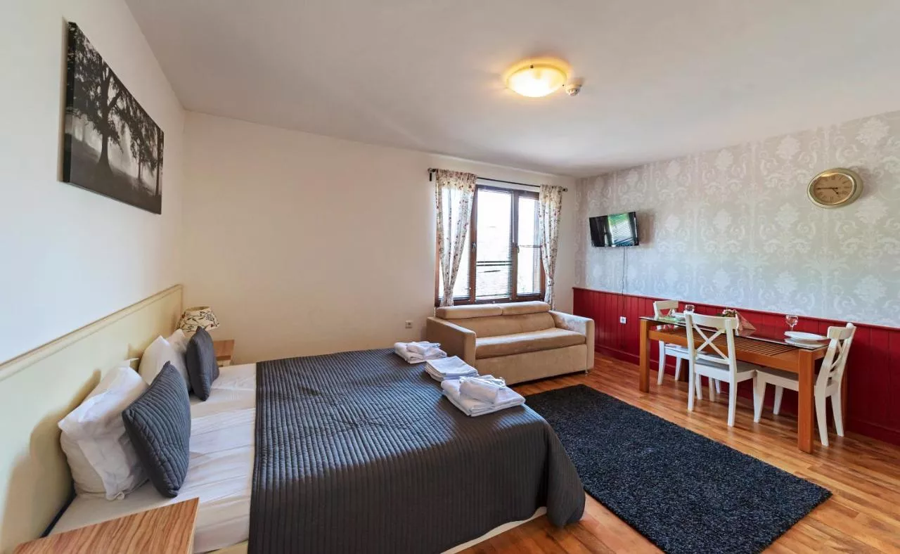 Dimensiuni: 27 mp Numar de camere: 1 camera Providing free toiletries, this studio includes a private bathroom with a shower and a hairdryer. Guests can make meals in the kitchenette that is equipped with a stovetop, a refrigerator, kitchenware and an oven. The studio features parquet floors, a seating area with a TV with cable channels, a coffee machine, a dining area, as well as a wardrobe. The unit offers 3 beds.