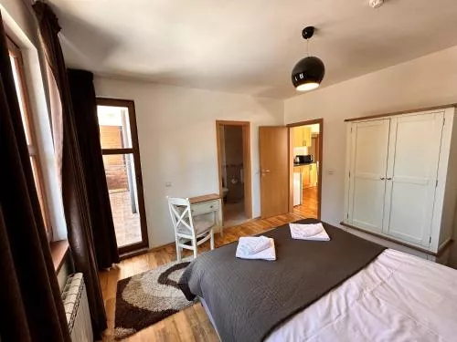 Dimensiuni: 45 mp Numar de camere: 1 camera The apartment features 1 bedroom and 1 bathroom with a shower and free toiletries. The well-equipped kitchenette has a stovetop, a refrigerator, kitchenware and an oven. The apartment provides a coffee machine, a seating area, a dining area, a TV with cable channels, as well as mountain views. The unit offers 2 beds.