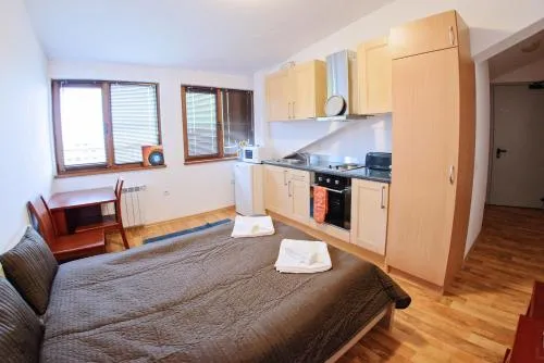 Dimensiuni: 27 mp Numar de camere: 1 camera Featuring free WiFi, a TV with cable channels, a living and dining areas and a fully equipped kitchenette. The bathroom comprises a shower and a hairdryer. Ironing facilities are provided on request. Some units offer a private balcony, overlooking the mountain and the ski slopes.