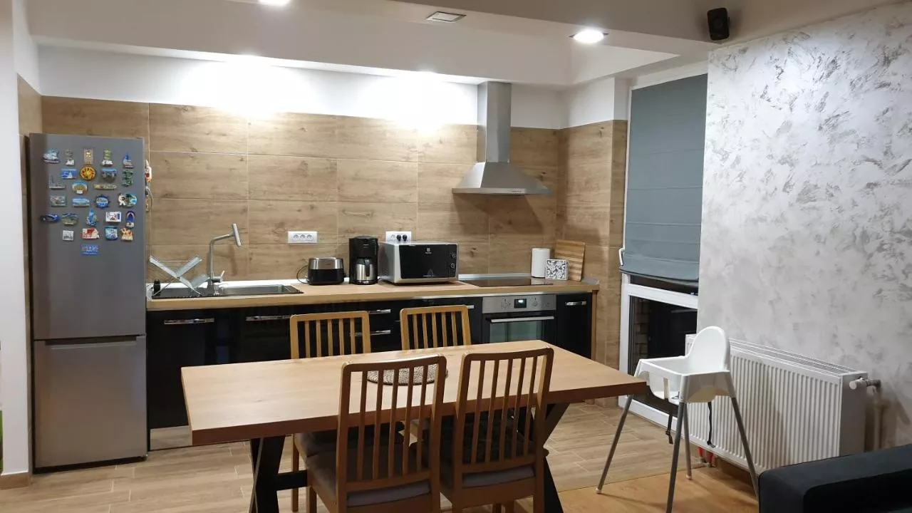 Dimensiuni: 55 mp Numar de camere: 2 camere Guests will find a stovetop, a refrigerator, kitchenware and an oven in the fully equipped kitchen. The apartment also provides guests with a barbecue. Featuring a terrace with garden views, this apartment also provides a private entrance and a flat-screen TV with streaming services. The unit offers 2 beds.