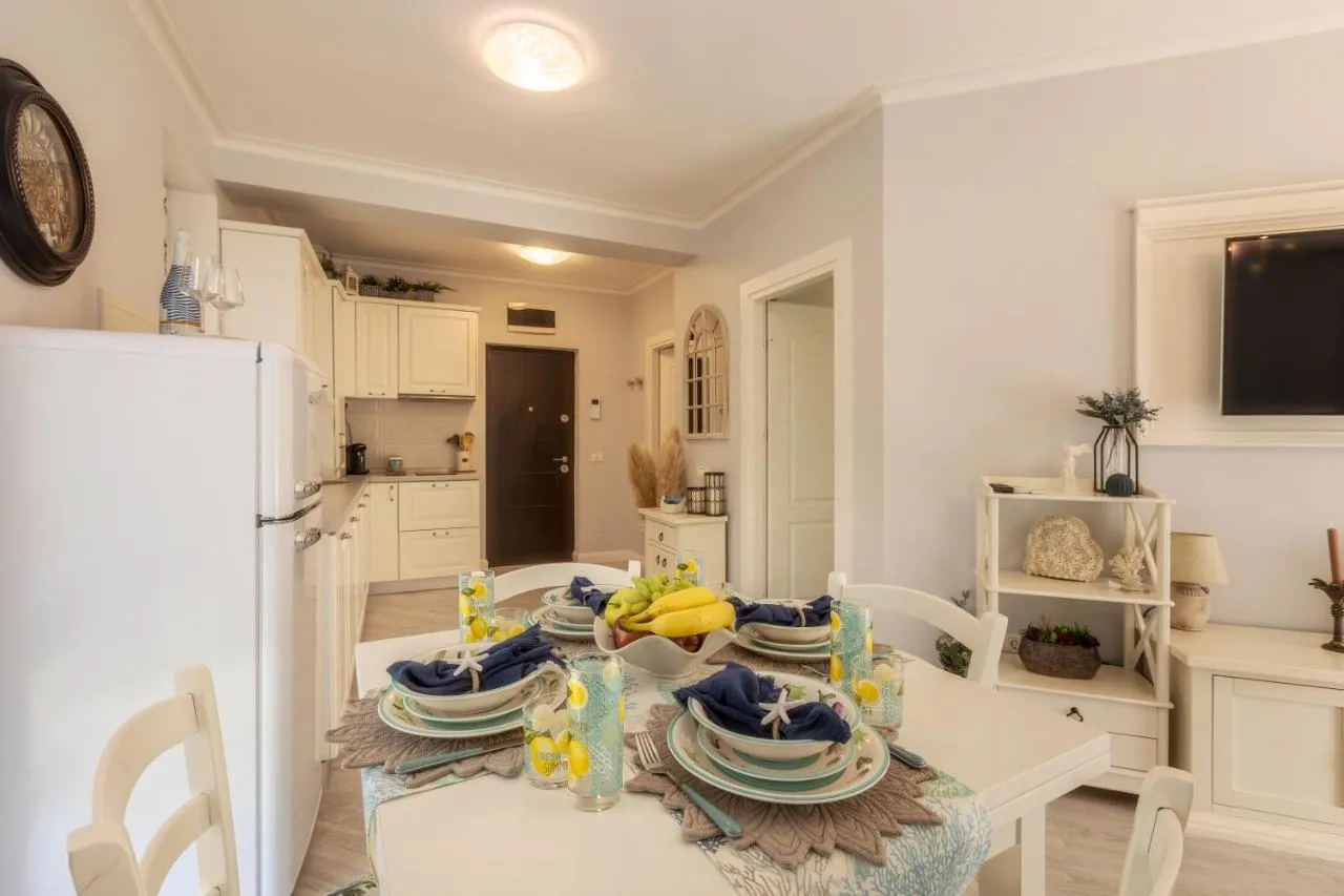 Dimensiuni: 60 mp Numar de camere: 2 camere This apartment includes 1 living room, 1 separate bedroom and 1 bathroom with a walk-in shower and free toiletries. In the kitchen, guests will find a stovetop, a refrigerator, a dishwasher and kitchenware. The air-conditioned apartment offers a flat-screen TV with cable channels, a washing machine, soundproof walls, a tea and coffee maker as well as sea views. The unit has 2 beds.