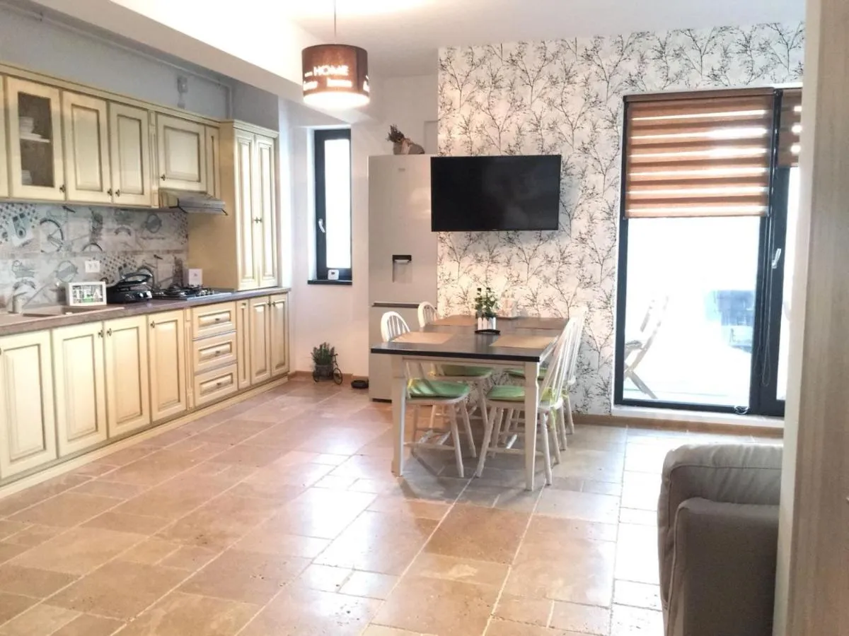 Apartamentul cu aer condiționat constă într-un dormitor, un living, o bucătărie complet echipată cu frigider și mașină de cafea, și o baie cu duș și uscător de păr. Prosoapele și lenjeria de pat sunt incluse în apartament.