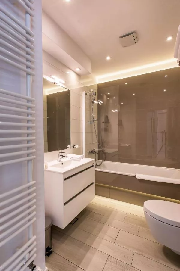 Media/Tehnologie: TV cu ecran plat TV Canale prin cablu Bucătărie: Cuptor Cuptor cu microunde Prăjitor de pâine Ustensile de bucătărie Maşină de spălat Produse de curățenie Masă Frigider Plită de gătit Cană fierbător Bucătărie General : Fier de călcat Facilităţi de călcat Hipoalergică Pardoseală de gresie/marmură Intrare privată Încălzire Aer condiţionat Detector de monoxid de carbon Izolare fonică Zonă de living: Zonă de relaxare Canapea Zonă de luat masa Baie: Articole de toaletă gratuite Hârtie igienică Cadă Prosoape Uscător de păr Toaletă Baie privată Dormitor: Lenjerie de pat Dressing Facilităţile camerei: Canapea extensibilă uscător de rufe Priză lângă pat Accesibilitate: Etaje superioare accesibile cu liftul Servicii: Acces la Executive Lounge Serviciu de trezire Caracteristicile clădirii: Apartament privat în clădire Independentă Mâncăruri și băuturi: Aparat pentru prepararea de ceai/cafea Exterior: Balcon Vedere: Vedere la punct de atracţie Distanțare fizică: Aer condiționat individual pentru fiecare cameră de la proprietate