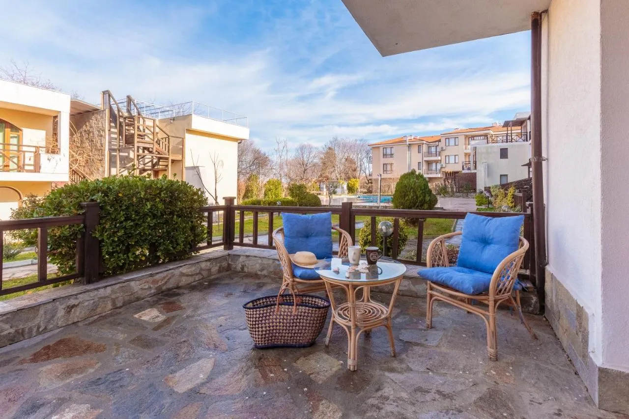 Cazarea este complet echipată și potrivită atât pentru sejurul unei familii, cât și pentru cupluri. Se află într-un complex de vacanță privat și închis, la câțiva pași de malul mării. Există un restaurant, o cafenea, un bancomat, un supermarket Lidl și o farmacie într-o rază de 500 de metri. Cea mai apropiată plajă este la 5 minute de mers pe jos, iar celelalte plaje cunoscute și spațioase, numite Harmani și Bamboo Beach, sunt la 900 de metri de proprietate. Complexul de vacanță oferă o priveliște pitorească asupra zonei Paradise Bay. Gazdele și personalul sunt disponibili oricând și vor fi bucuroși să vă ajute în funcție de nevoile și întrebările dumneavoastră.
