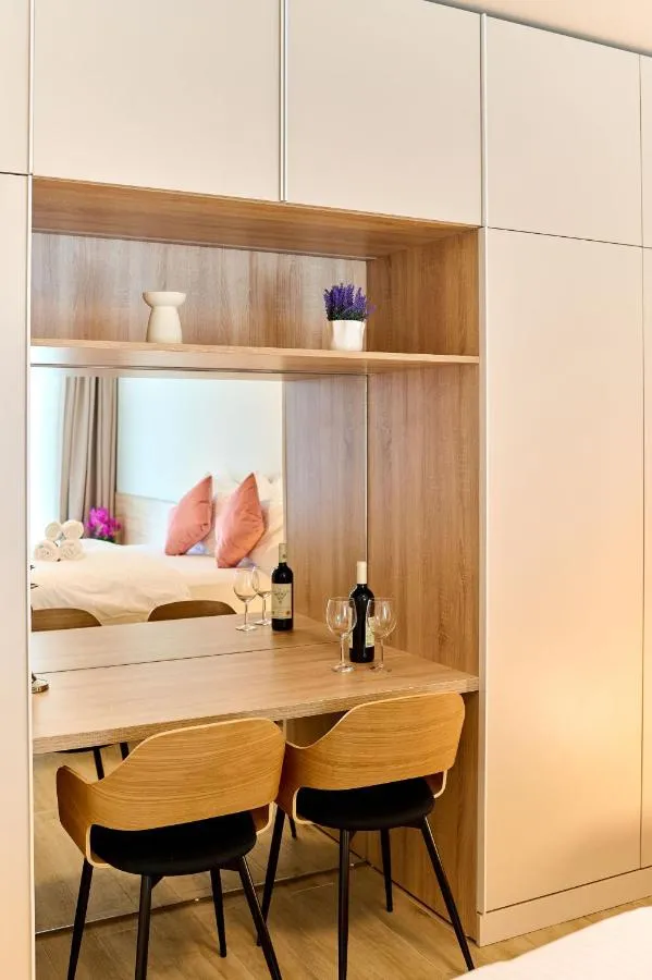 Dimensiuni: 47 mp Numar de camere: 2 camere This apartment features 1 living room, 1 separate bedroom and 1 bathroom with a shower and free toiletries. In the kitchen, guests will find a stovetop, a refrigerator, a dishwasher and kitchenware. The air-conditioned apartment features a flat-screen TV, a washing machine, a tea and coffee maker, a dining area as well as sea views. The unit has 2 beds.