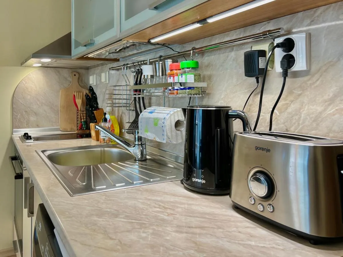 Dimensiuni: 127 mp Numar de camere: 2 camere This spacious apartment features 1 living room, 1 separate bedroom and 1 bathroom with a shower. Meals can be prepared in the well-fitted kitchenette, which features a refrigerator, kitchenware, an oven and a microwave. The air-conditioned apartment features a flat-screen TV with streaming services, a washing machine, a tea and coffee maker, a seating area as well as sea views. The unit has 3 beds. Baie privată cu duș