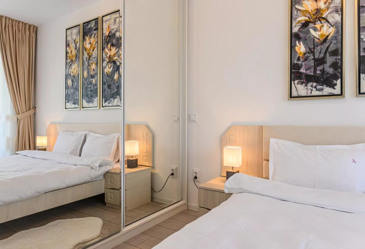 Dimensiuni: 58 mp Numar de camere: 2 camere This apartment is comprised of 1 living room, 1 separate bedroom and 1 bathroom with a bath and a hairdryer. The well-equipped kitchen features a stovetop, a refrigerator, kitchenware and an oven. Featuring a balcony with mountain views, this apartment also offers a washing machine and a TV with satellite channels. The unit offers 2 beds. Baie privată cu cadă