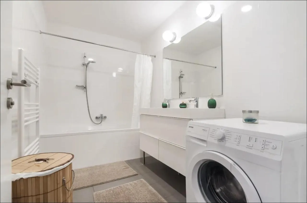 Bucătărie: Mașină de cafea Masă Cuptor Cuptor cu microunde Frigider Prăjitor de pâine Plită de gătit Ustensile de bucătărie Chicinetă Cană fierbător Bucătărie Maşină de spălat Produse de curățenie Scaun înalt pentru copii General : Pardoseală de lemn sau parchet Fier de călcat Ventilator Facilităţi de călcat Pardoseală de gresie/marmură Încălzire Exterior: Mobilier de grădină Terasă Balcon Facilităţile camerei: uscător de rufe Canapea extensibilă Caracteristicile clădirii: Apartament privat în clădire Zonă de living: Zonă de relaxare Zonă de luat masa Baie: Articole de toaletă gratuite Toaletă suplimentară Uscător de păr Toaletă Baie suplimentară Duş Hârtie igienică Baie privată Divertisment și servicii pentru familii: Jocuri și puzzle-uri Vedere: Vedere la oraș