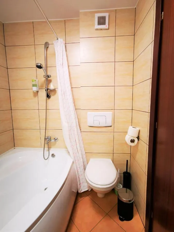 Baie: Articole de toaletă gratuite Papuci de casă Toaletă Hârtie igienică Cadă Baie privată