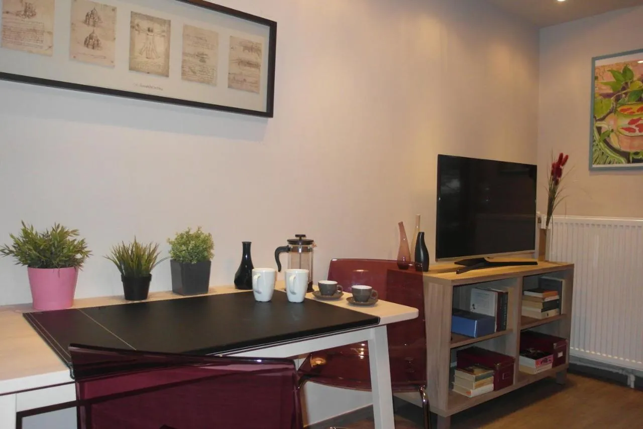 Dimensiuni: 45 mp Numar de camere: 2 camere This tastefully decorated apartment offers a fully equipped kitchen and a dining table that can accommodate three persons. It has a large double bed but also features a sitting area with a large flat screen TV. It has also a small balcony with street view. Baie privată cu duș