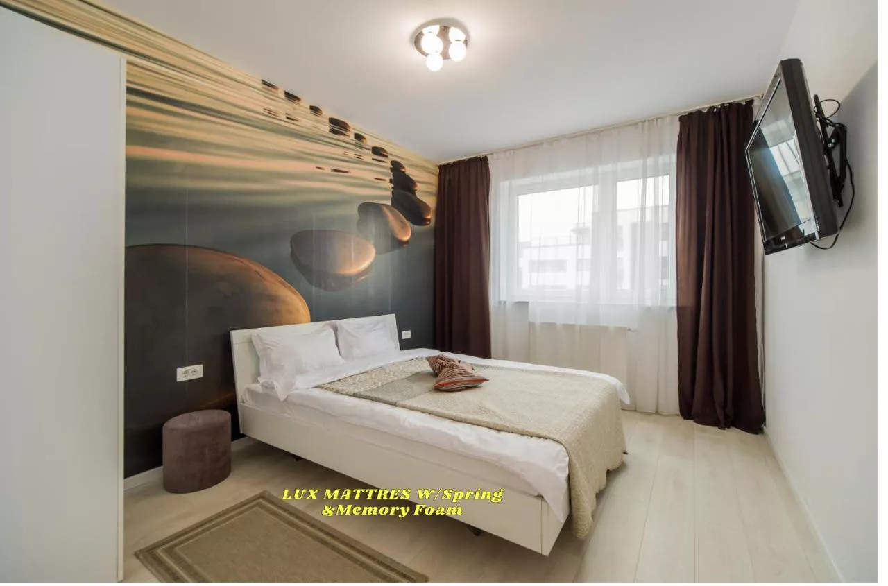 Apartamentul este dotat cu 1 dormitor, 1 baie, lenjerie de pat, prosoape, un televizor cu ecran plat cu canale prin satelit, o zonă de luat masa, o bucătărie complet echipată și o terasă cu vedere la oraș.