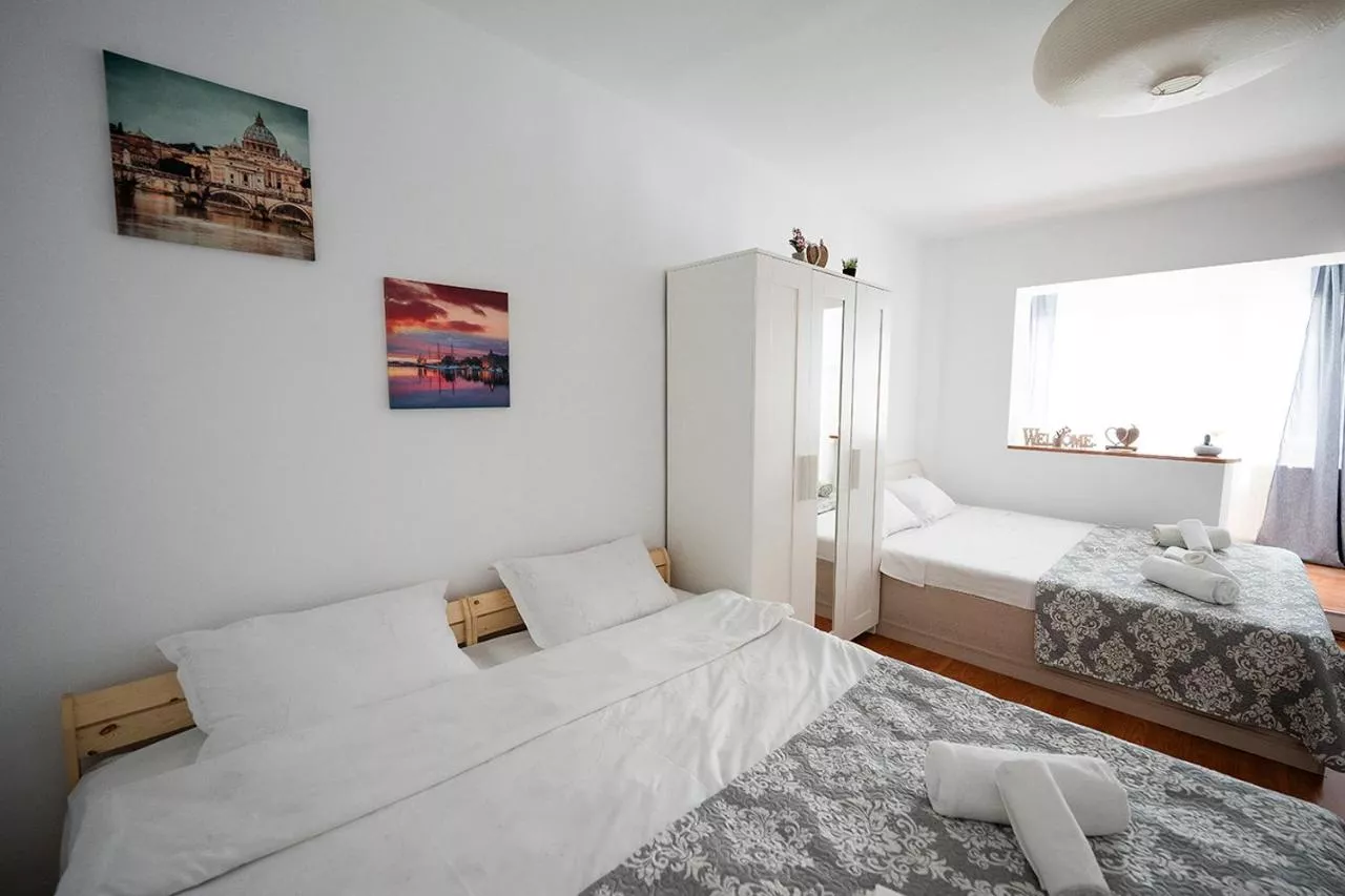 Dimensiuni: 35 mp Numar de camere: 2 camere The quadruple room features air conditioning, a private entrance, as well as a shared bathroom boasting a bath and a shower. In the well-fitted kitchen, guests will find a refrigerator, kitchenware, a microwave and a tea and coffee maker. The quadruple room offers a dining area, a wardrobe, a dressing room, heating, as well as a flat-screen TV. The unit has 2 beds.