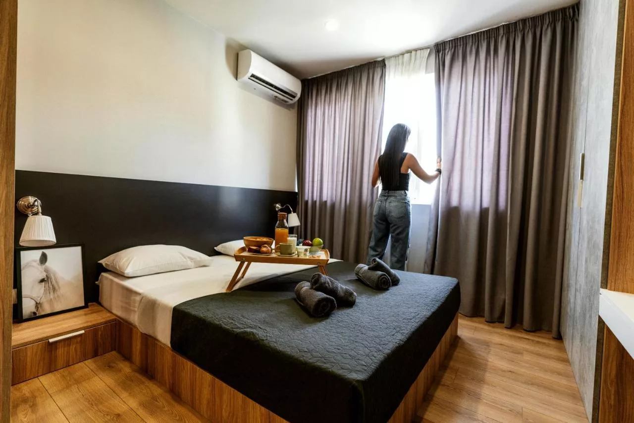 Food & Drink: Dining table Tea/Coffee maker Refrigerator Stovetop Kitchenette Electric kettle Kitchen Accessibility: Upper floors accessible by elevator Media & Technology: Flat-screen TV Pay-per-view channels TV Streaming service (like Netflix) Satellite channels Room Amenities: Extra long beds (> 2 metres) Iron Socket near the bed Tile/marble floor Soundproofing Air conditioning Services & Extras: Towels Linen Bathroom: Free toiletries Hairdryer Toilet Shower Toilet paper Private bathroom Outdoor & View: Inner courtyard view Building characteristics: Detached Physical distancing: Single-room air conditioning for guest accommodation Cleanliness & disinfecting: Hand sanitiser