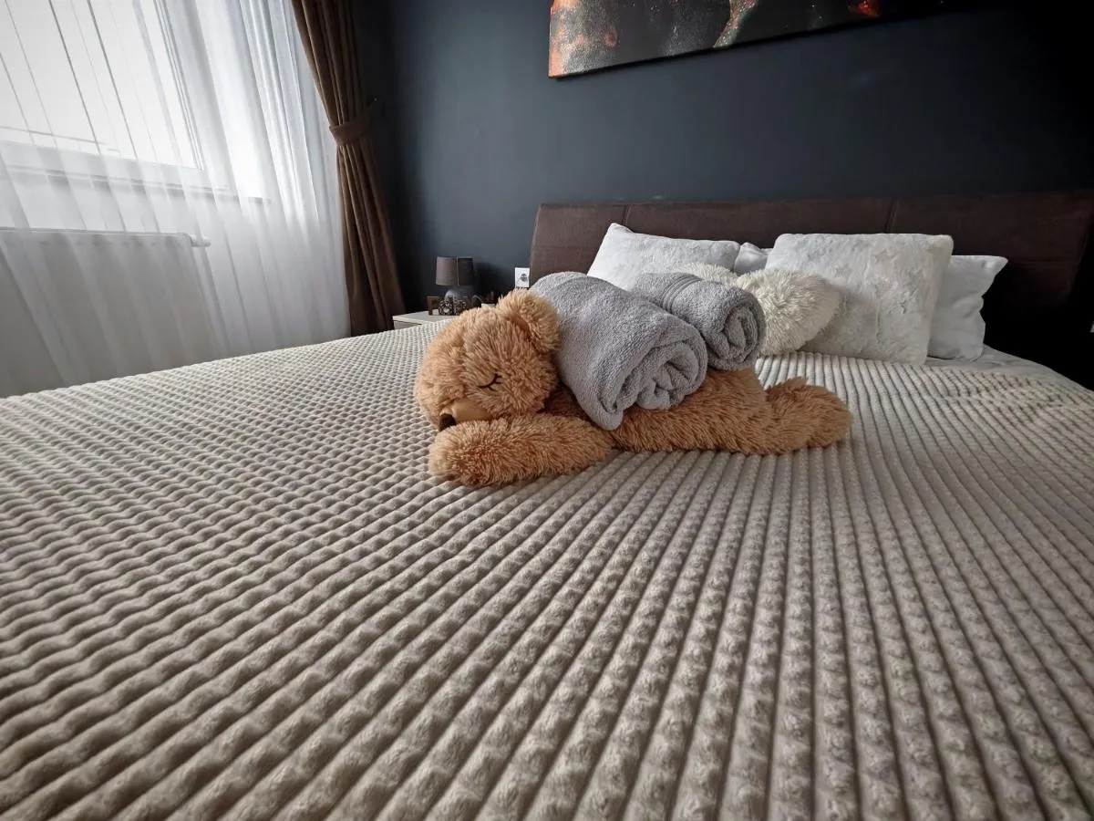 Apartamentul dispune de 1 dormitor, 1 baie, lenjerie de pat, prosoape, un televizor cu ecran plat cu canale prin cablu, o zonă de luat masa, o bucătărie complet echipată și un balcon cu vedere la munte. O intrare privată îi conduce pe oaspeți în apartament, unde se pot bucura de un pahar de vin sau șampanie. Cazarea este pentru nefumători.