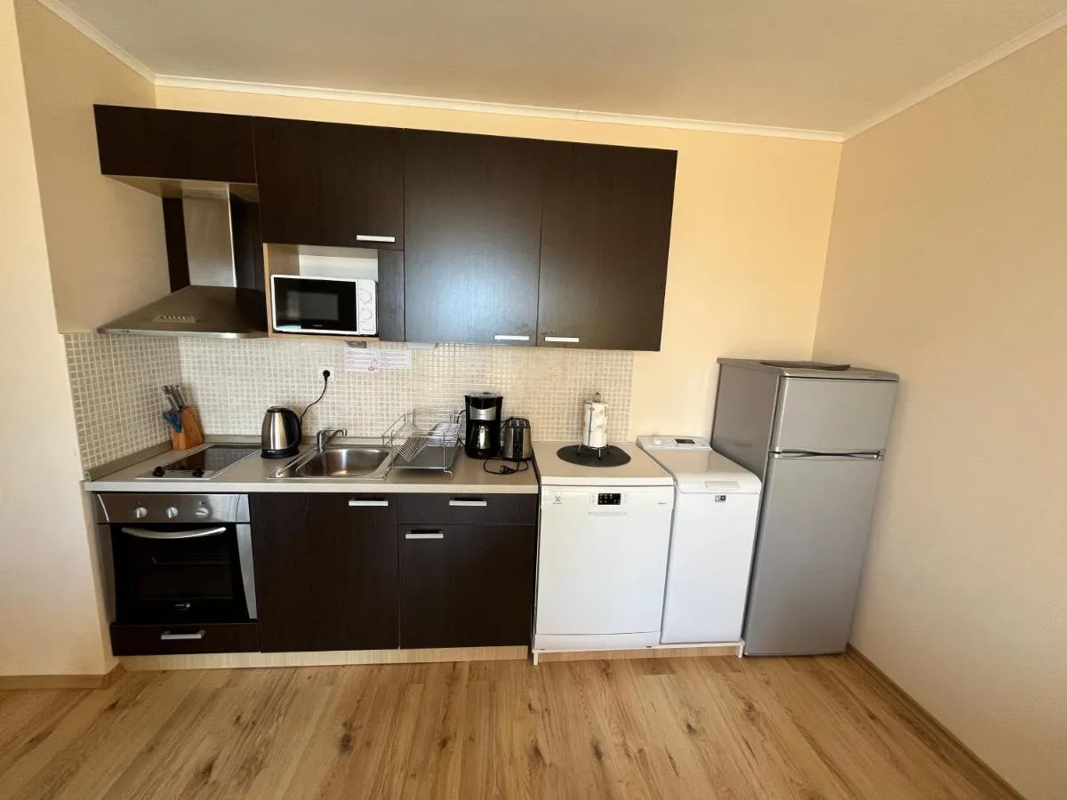 Dimensiuni: 73 mp Numar de camere: 2 camere The pool with a view is a top feature of this apartment. Boasting a private entrance, this air-conditioned apartment comes with 1 living room, 1 separate bedroom and 1 bathroom with a shower and a hairdryer. Meals can be prepared in the well-fitted kitchen, which features a stovetop, a refrigerator, a dishwasher and an oven. The spacious apartment features a washing machine, a tea and coffee maker, a seating area, a flat-screen TV with cable channels, as well as sea views. The unit has 2 beds.