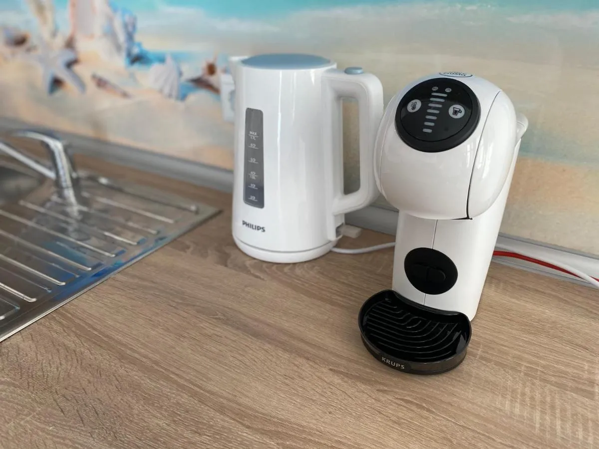 Bucătărie: Mașină de cafea Masă Frigider Plită de gătit Ustensile de bucătărie Chicinetă Cană fierbător Bucătărie Maşină de spălat Vedere: Vedere la mare Media/Tehnologie: TV cu ecran plat TV Zonă de living: Canapea Zonă de relaxare General : Fier de călcat Facilităţi de călcat Intrare privată Încălzire Aer condiţionat Facilităţile camerei: uscător de rufe Priză lângă pat Canapea extensibilă Baie: Prosoape Uscător de păr Toaletă Hârtie igienică Baie privată Exterior: Terasă Balcon Mâncăruri și băuturi: Aparat pentru prepararea de ceai/cafea Dormitor: Garderobă sau dulap