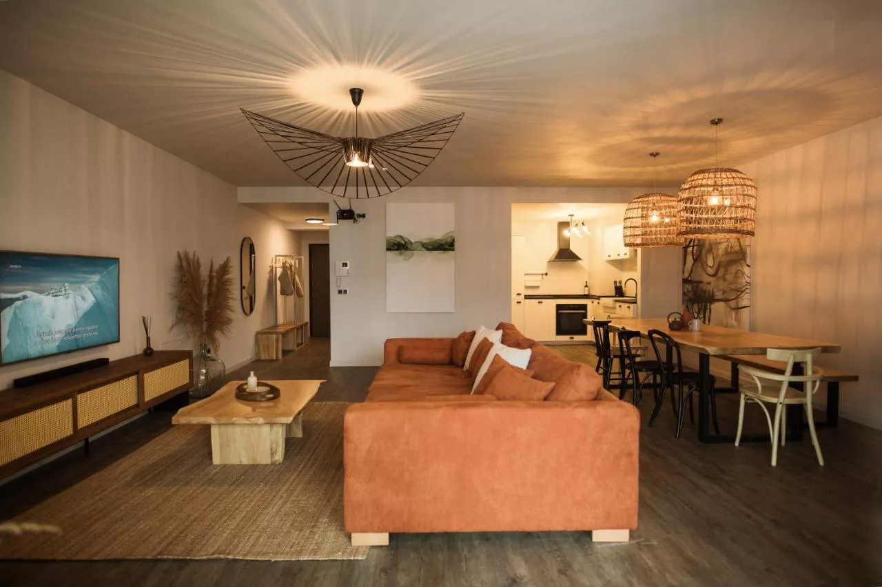 Apartamentul spațios, cu terasă și vedere la munte, dispune de 2 dormitoare, un living, un televizor cu ecran plat, o bucătărie echipată cu mașină de spălat vase și cuptor, și 3 băi cu bideu. Prosoapele și lenjeria de pat sunt furnizate în apartament. Acest apartament este antialergic și pentru nefumători.
