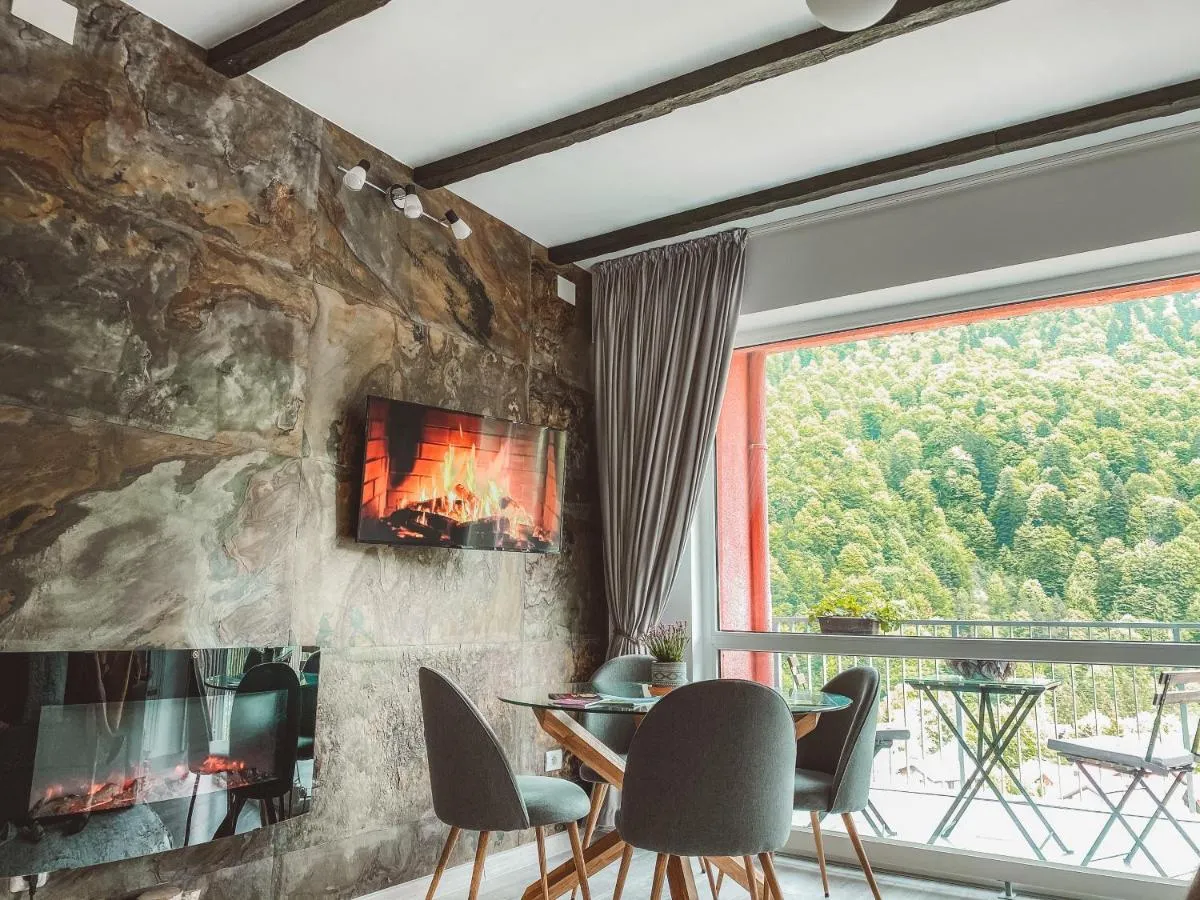 Apartamentul are 1 dormitor, 1 baie, lenjerie de pat, prosoape, un televizor cu ecran plat cu servicii de streaming, o zonă de luat masa, o bucătărie complet echipată și o terasă cu vedere la munte. Pardoseala de parchet, șemineul și atmosfera liniștită contribuie la ambianța camerei. Acest apartament este fără alergeni și pentru nefumători.