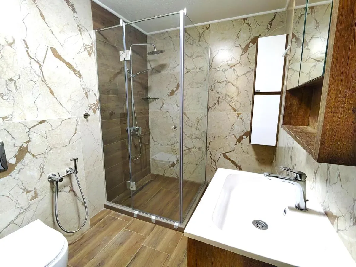 Dimensiuni: 85 mp Numar de camere: 2 camere This spacious apartment is comprised of 1 living room, 2 separate bedrooms and 2 bathrooms with a bath and free toiletries. In the fully equipped kitchen, guests will find a stovetop, a refrigerator, kitchenware and an oven. This apartment is air-conditioned and features a seating area with a flat-screen TV, a washing machine, a tea and coffee maker, a dining area, as well as a wardrobe. The unit offers 3 beds.