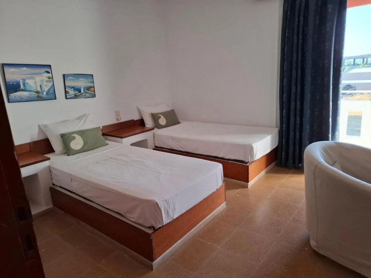 Dimensiuni: 30 mp Numar de camere: 1 camera The triple room offers air conditioning, soundproof walls, a terrace with sea views as well as a private bathroom featuring a walk-in shower. The unit offers 2 beds.
