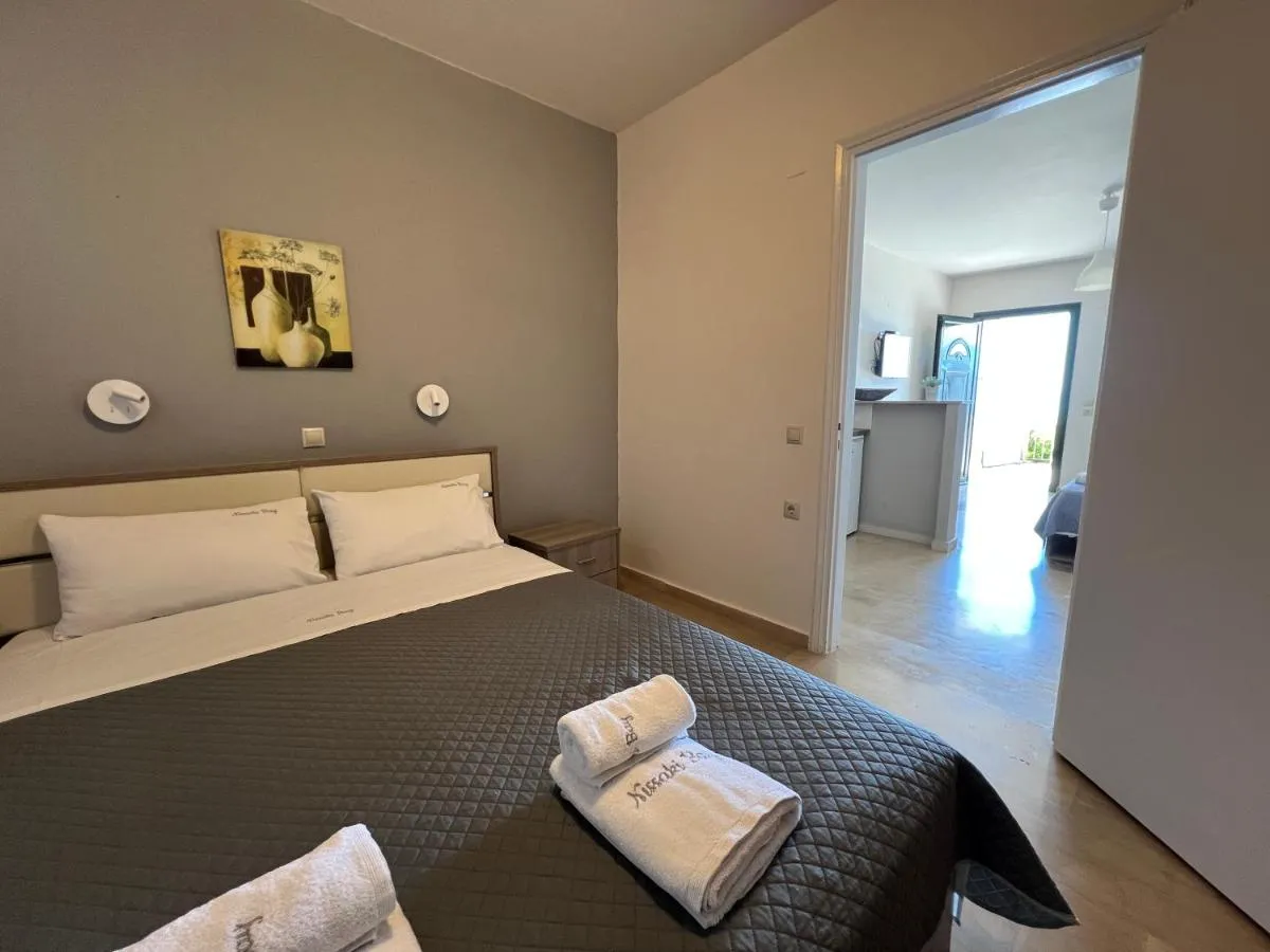 Apartamentele cu aer condiționat de la Nissaki Bay se deschid către un balcon mobilat. Facilitățile includ o chicinetă, un televizor cu cablu și o baie privată cu produse de toaletă gratuite.