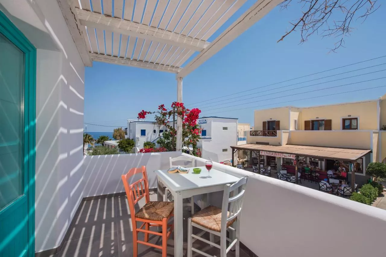 Complexul de la malul mării, Nissia Apartments, este situat chiar în fața unicului plajă cu nisip negru din Kamari. Oferă vederi minunate asupra răsăritului magnific din Santorini și a Mării Egee.