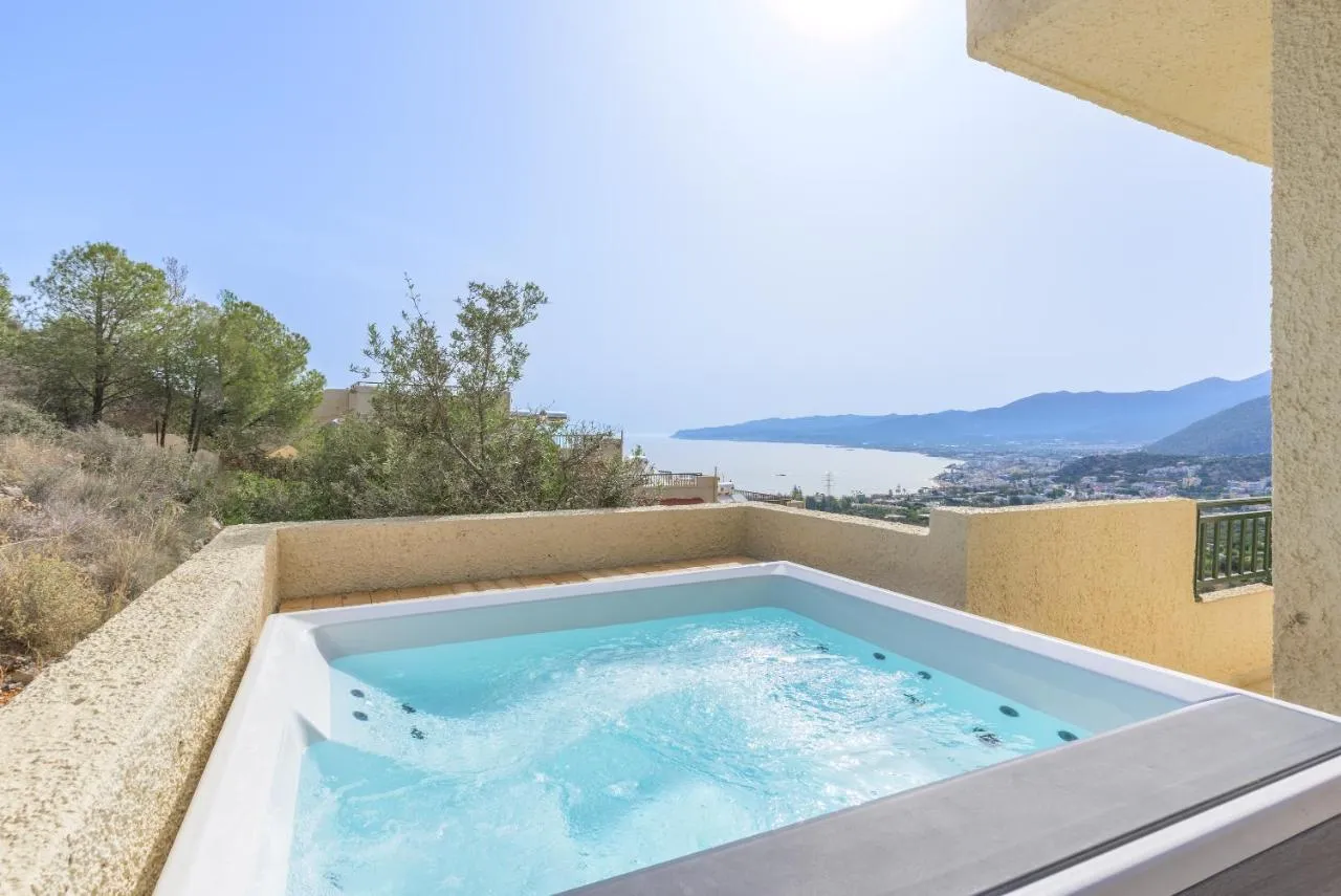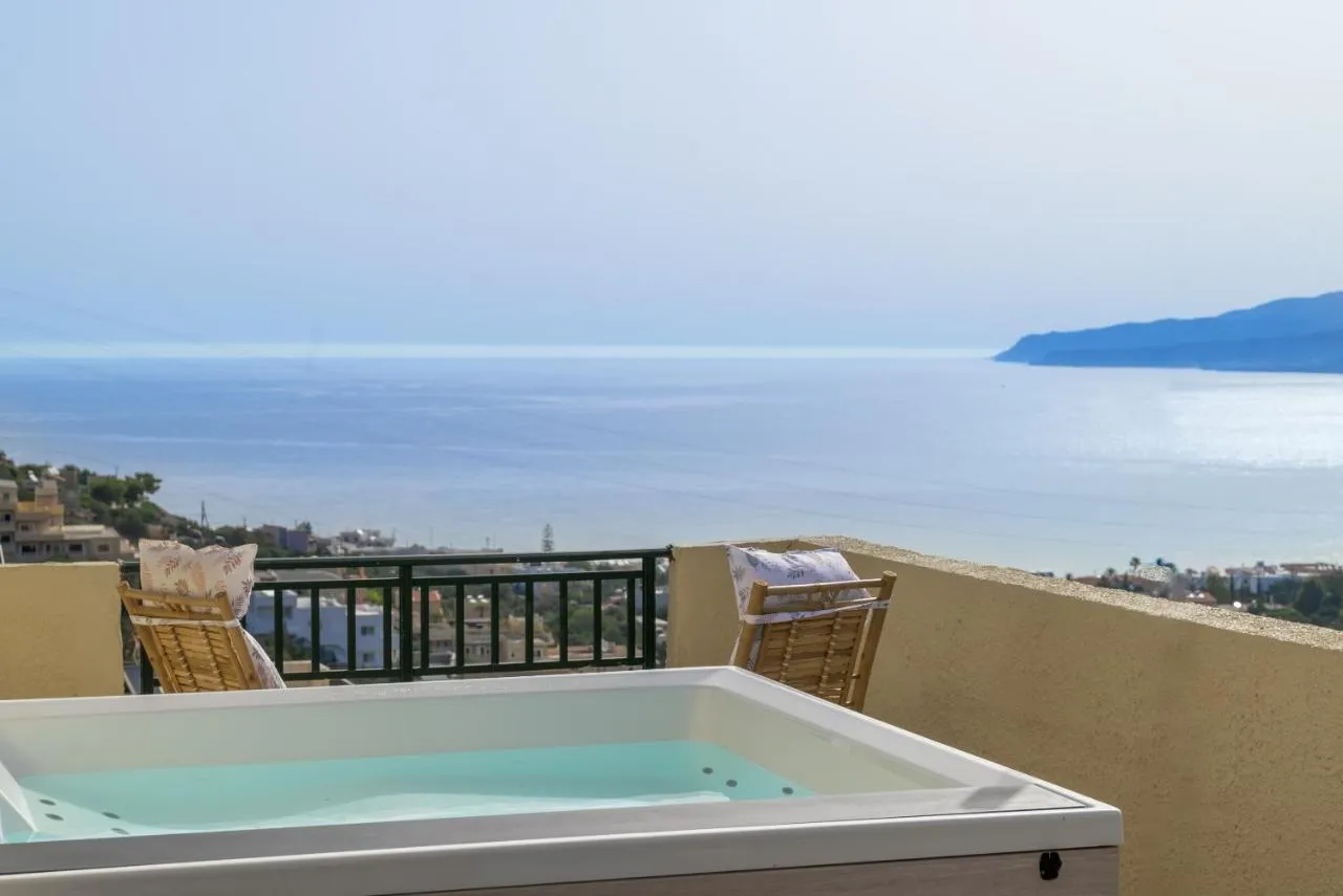 Dimensiuni: 45 mp Numar de camere: 2 camere Guests will have a special experience as this apartment features a hot tub. Featuring a private entrance, this air-conditioned apartment is comprised of 1 living room, 1 separate bedroom and 1 bathroom with a shower and a hairdryer. The kitchenette comes with a stovetop, a refrigerator and kitchenware. Boasting a terrace with sea views, this apartment also offers a tea and coffee maker and a flat-screen TV with satellite channels. The unit offers 2 beds.