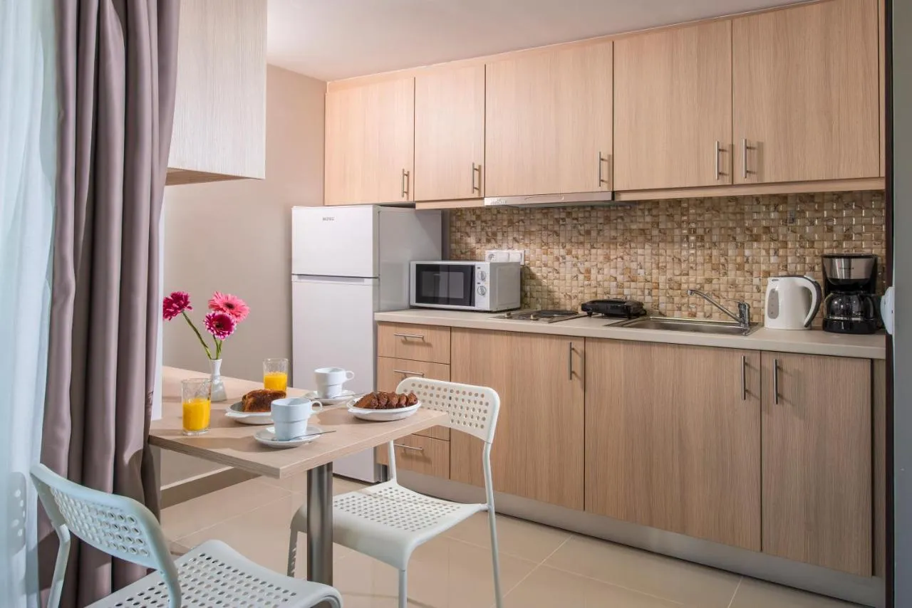 Dimensiuni: 60 mp Numar de camere: 2 camere Offering direct access to the swimming pools of the sister property, this open-plan suite offers a flat-screen TV with satellite channels. It has free WiFi, and a kitchenette with fridge, microwave and cooking hobs. A hairdryer and an iron are included.