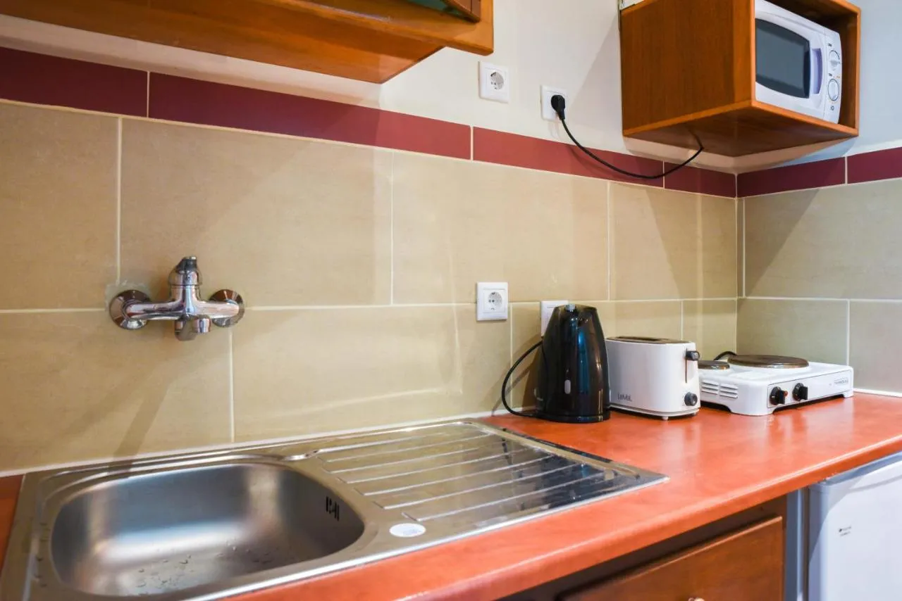 - chicinetă cu prăjitor de pâine, cuptor cu microunde, plită și fierbător electric
