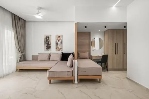 Dotate cu pardoseli din gresie sau marmură și mobilier modern, studiourile cu aer condiționat de la Dora au o chicinetă cu frigider, masă de luat masa, cafetieră și plită. Fiecare unitate include o baie privată cu cadă sau duș și produse de toaletă gratuite. Un seif și un televizor cu ecran plat sunt disponibile.
