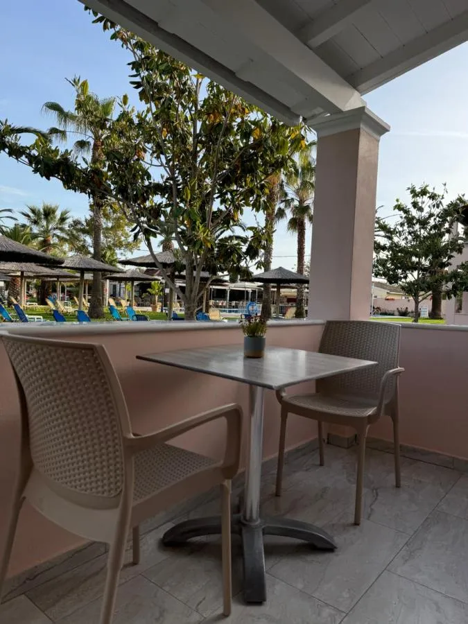 Un mic dejun tip bufet, continental sau englezesc/irlandez complet este disponibil zilnic la proprietate. Restaurantul de la aparthotel servește bucătărie grecească.