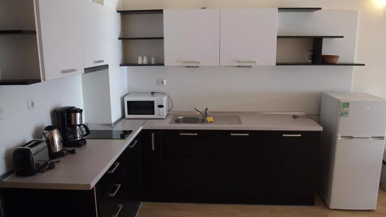 Dimensiuni: 65 mp Numar de camere: 2 camere This apartment provides a private pool. This spacious apartment includes 1 living room, 1 separate bedroom and 1 bathroom with a bath and free toiletries. The well-fitted kitchen has a stovetop, a refrigerator, kitchenware and a microwave. The air-conditioned apartment offers a flat-screen TV with cable channels, a washing machine, a coffee machine, a seating area as well as sea views. The unit has 3 beds.