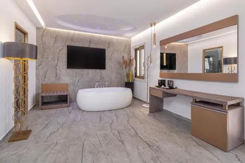 Dimensiuni: 27 mp Numar de camere: 3 camere Guests will have a special experience as the suite provides a hot tub. The air-conditioned suite features 1 bedroom and 1 bathroom with a walk-in shower and a bath. This suite has soundproof walls, flat-screen TV with cable channels, sea views, as well as wine/champagne for guests. The unit offers 1 bed. Baie privată cu cadă