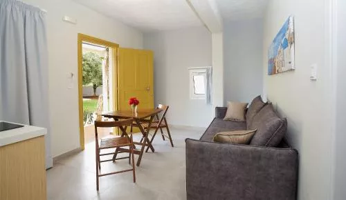 Studiourile mari, construite în stilul tradițional Egeean, dispun de băi renovate și oferă televizor și balcon sau grădină.