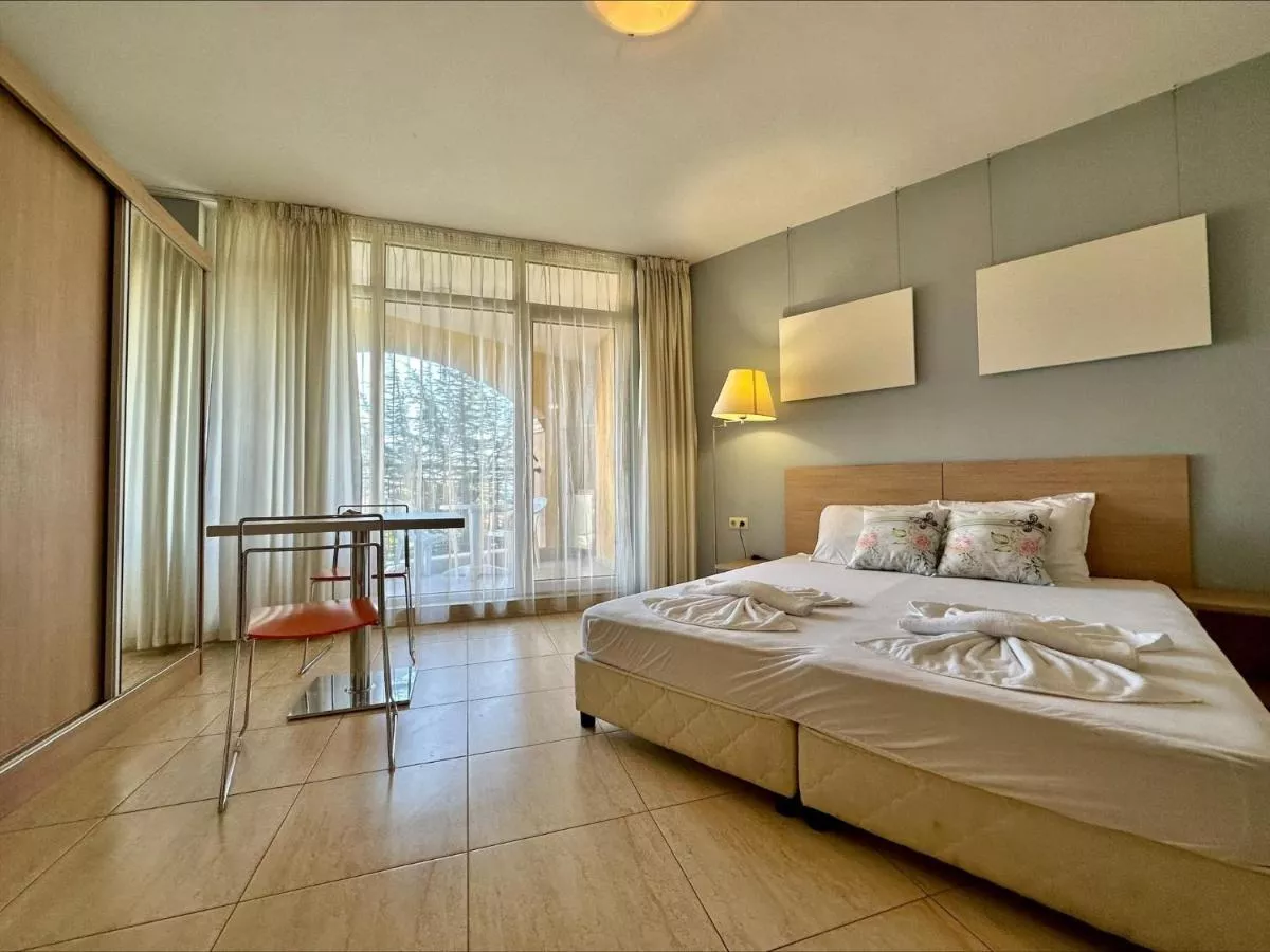 Apartamentele Menada Grand Resort sunt situate într-un complex modern, cu piscine exterioare și baruri, chiar pe plaja din Aheloy.
