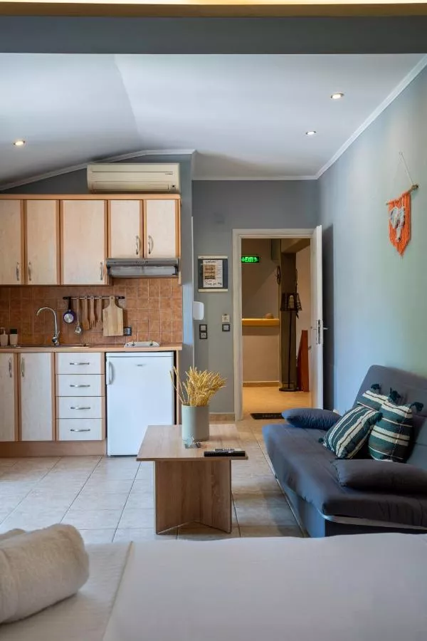 Mănăstirea Șerpilor Fecioarei se află la 10 km de stațiune, în timp ce Mănăstirea Fecioarei Atrou este la 18 km distanță. Cel mai apropiat aeroport este Aeroportul Kefalonia, la 35 km de Helen's Studios & Apartments.