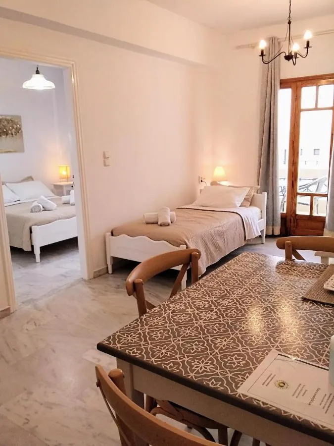 Spațioasele studiouri și apartamente cu aer condiționat de la Idomeneas dispun de chicinete cu ustensile, frigider și plită. Toate unitățile includ și o zonă de relaxare și o baie. Balcoanele lor mari sunt mobilate și oferă vederi relaxante către grădină, țară și mare.