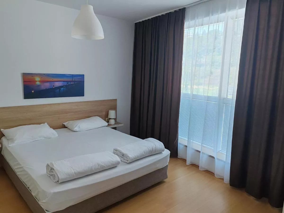 Dimensiuni: 51 mp Numar de camere: 1 camera Apartament modern, cu terasă spațioasă și vedere panoramică la mare, chicinetă complet utilată, zonă de living și baie privată cu cadă. Baie privată cu duș