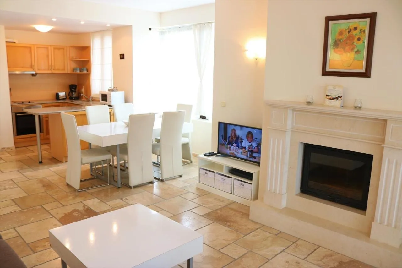 Media/Tehnologie: TV cu ecran plat DVD player TV Canale prin cablu Bucătărie: Cuptor Cuptor cu microunde Prăjitor de pâine Ustensile de bucătărie Maşină de spălat Mașină de cafea Masă Frigider Plită de gătit Chicinetă Cană fierbător Bucătărie Exterior: Mobilier de grădină Patio Piscină privată Terasă Balcon Zonă de luat masa în aer liber General : Fier de călcat Facilităţi de călcat Pardoseală de gresie/marmură Încălzire Aer condiţionat Cameră(e) comunicantă(e) disponibilă(e) Vedere: Vedere la piscină Vedere la curtea interioară Vedere la grădină Zonă de living: Zonă de relaxare Canapea Șemineu Zonă de luat masa Baie: Toaletă suplimentară Hârtie igienică Cadă Prosoape Uscător de păr Toaletă Baie suplimentară Duş bideu Baie privată Dormitor: Lenjerie de pat Garderobă sau dulap Facilităţile camerei: Canapea extensibilă uscător de rufe Priză lângă pat Accesibilitate: Etaje superioare accesibile doar pe scări Unitate situată integral la parter Caracteristicile clădirii: Apartament privat în clădire Divertisment și servicii pentru familii: Jocuri și puzzle-uri Mâncăruri și băuturi: Aparat pentru prepararea de ceai/cafea
