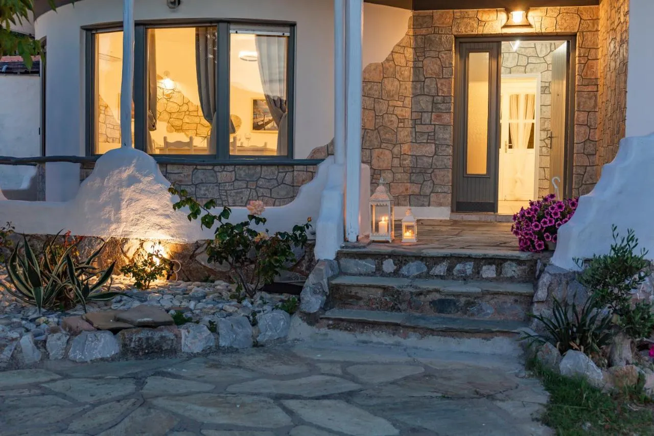 Faimoasa plajă Stafylos, înconjurată de vegetație luxuriantă, poate fi atinsă într-o călătorie de 10 minute cu mașina. Portul Skopelos este la 10 minute de mers pe jos. Parcarea privată la fața locului este disponibilă gratuit.