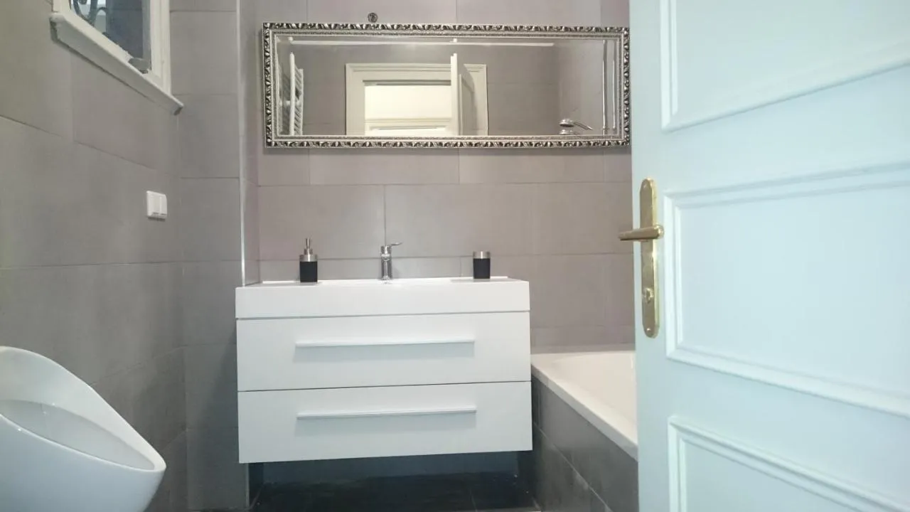 Apartamentul este accesibil cu liftul. Baie privată cu duș