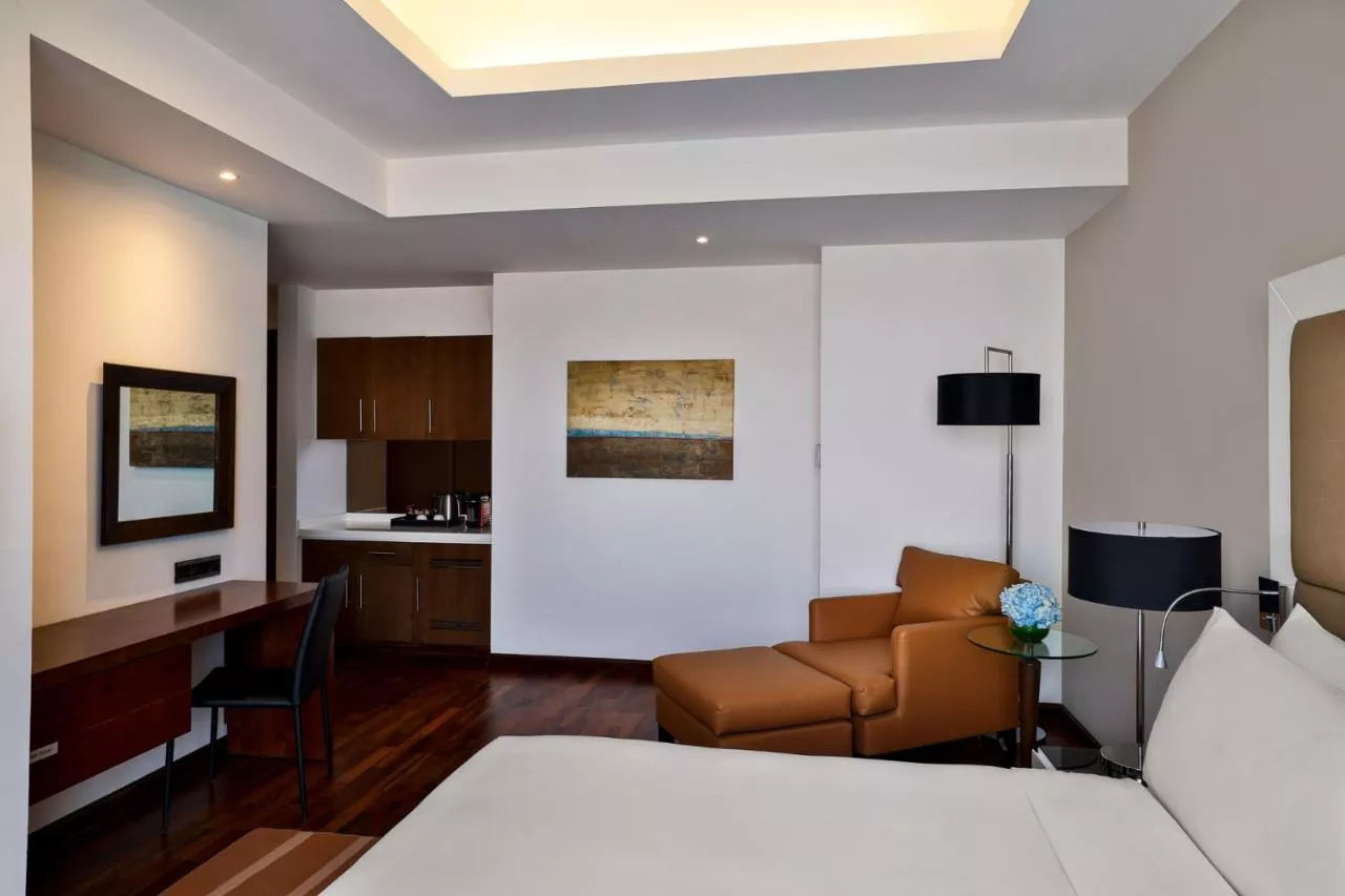 General : Seif pentru laptop Seif Pardoseală de lemn sau parchet Fier de călcat Facilităţi de călcat Hipoalergică Presă pentru călcat pantaloni Cameră(e) comunicantă(e) disponibilă(e) Aer condiţionat Baie: Halat de baie Prosoape Articole de toaletă gratuite Papuci de casă Uscător de păr Toaletă Duş bideu Hârtie igienică Baie privată Bucătărie: Mașină de cafea Cană fierbător Media/Tehnologie: TV cu ecran plat TV Telefon Canale prin cablu Servicii: Serviciu de trezire Internet : Internet wireless Mâncăruri și băuturi: Aparat pentru prepararea de ceai/cafea Minibar Dormitor: Lenjerie de pat Garderobă sau dulap Vedere: Vedere la oraș
