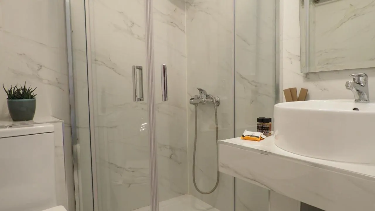 Dimensiuni: 50 mp Numar de camere: 1 camera This air-conditioned apartment features 1 living room, 2 separate bedrooms and 1 bathroom with a shower. The fully equipped kitchen has a stovetop, a refrigerator and kitchenware. Boasting a terrace with sea views, this apartment also features a tea and coffee maker and a flat-screen TV. The unit has 4 beds. Baie privată cu duș
