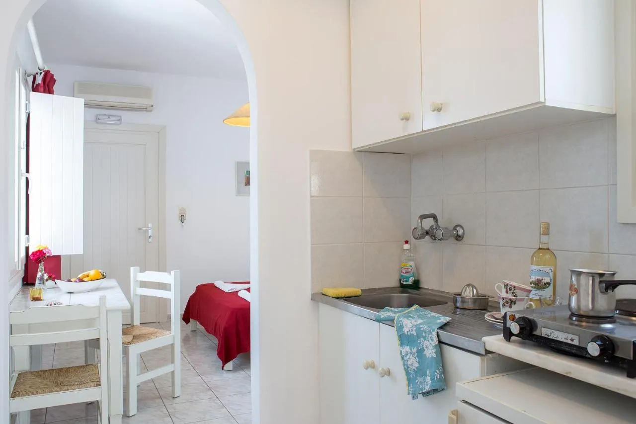 Situat discret printre măslini și vii, în stil cicladic, Marili Apartments Studios se află la 150 de metri de plaja Souvlia din Paros. Oferă cazare de tip self-catering cu Wi-Fi gratuit și balcon mobilat cu vedere la curtea cu buganvillae.
