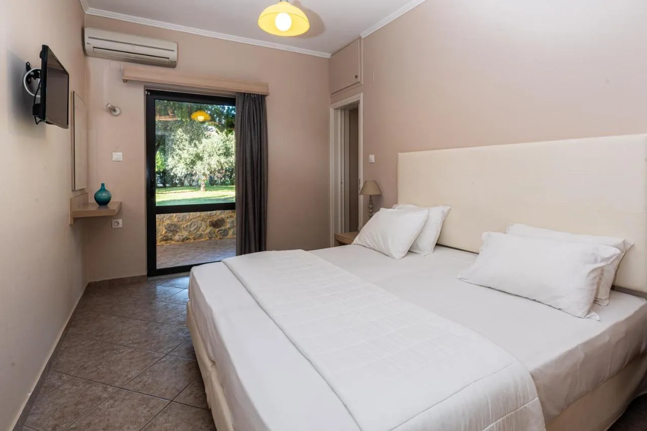 Fiecare unitate este dotată cu aer condiționat și dispune de o chicinetă echipată cu un frigider. Camerele se deschid către un balcon mobilat cu vedere la grădina comună. Fiecare unitate are o baie privată echipată cu duș. Se oferă prosoape.
